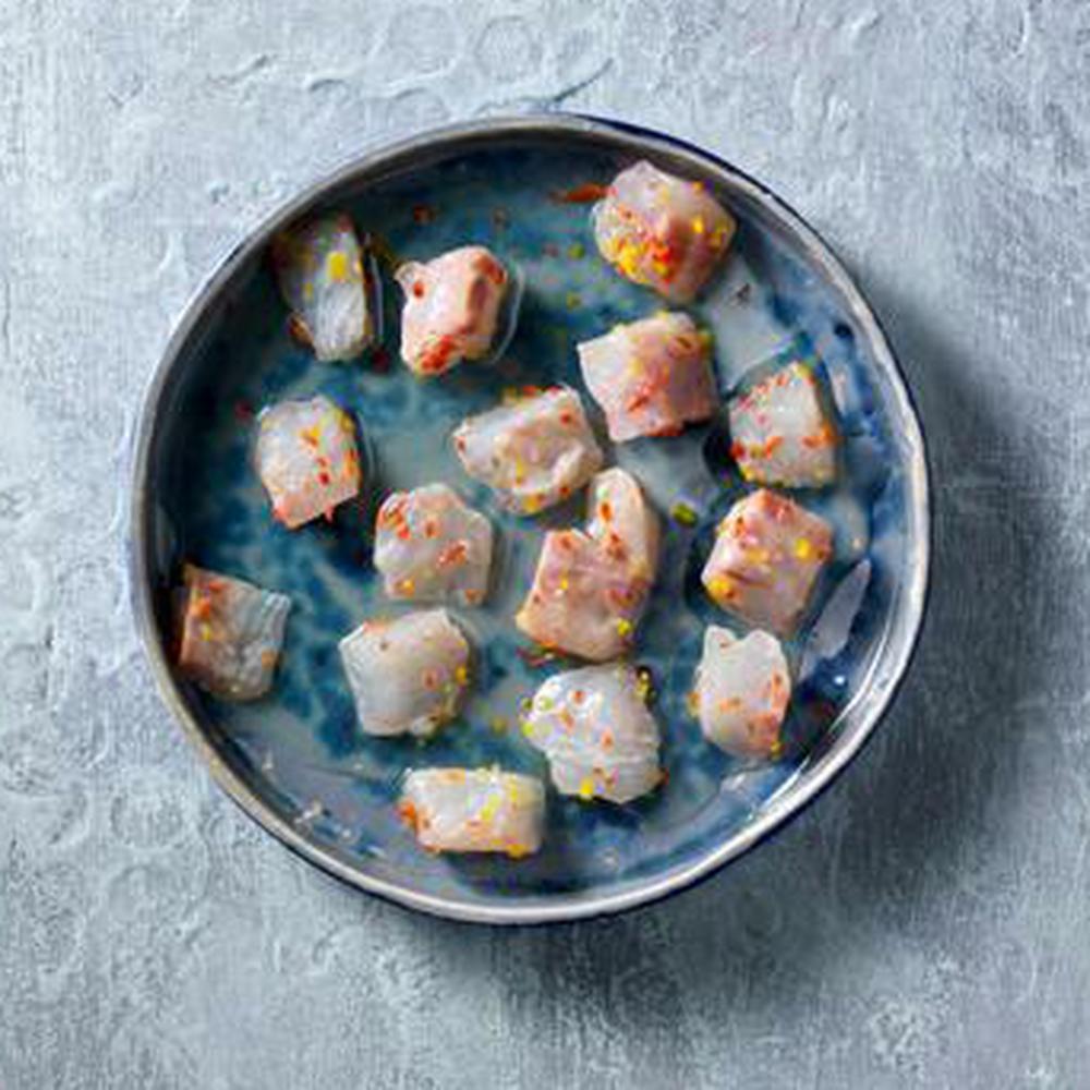 Adlerfisch-Ceviche 2020-09-19 - Ein Rezept von Florian Conzen. Muschelsud aufkochen Noilly Prat und die Hälfte der Sahne zufügen und alles auf fast die Hälfte einkochen. Stolze 23kg die ruck-zuck von unseren Damen in der Produktion filetiert werden.