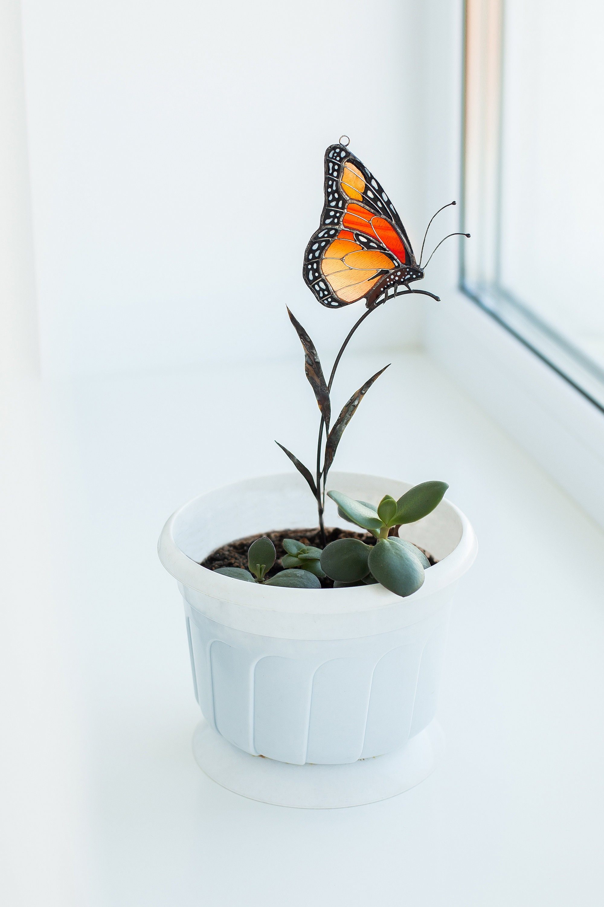 Monarch Butterfly Stained Glass Plant Stake Decorative Plant Etsy