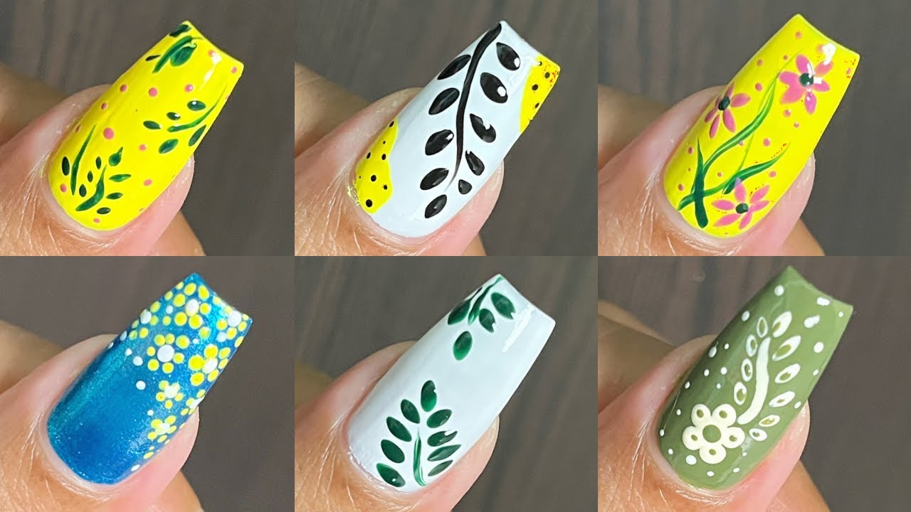Easy Leaf And Flower Nail Art At Home Easy Nail Art Designs For Beginners Youtube